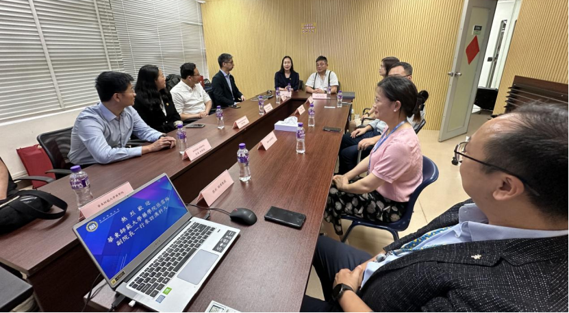 澳门大学中华医药研究院是中药质量研究国家重点实验室(澳门大学)的主要依托建设单位。研究院经理、重点实验室主任陈新教授向代表团一行介绍了实验室的发展情况和研究院在中药人才培养方面做出的努力。在交流环节,双方就中医药大模型、中药新药研发等互相关心的科研内容进行了研讨,并期待可以在人工智能赋能下的中医药发展、医药管理等相关学科领域开展更多地合作。
