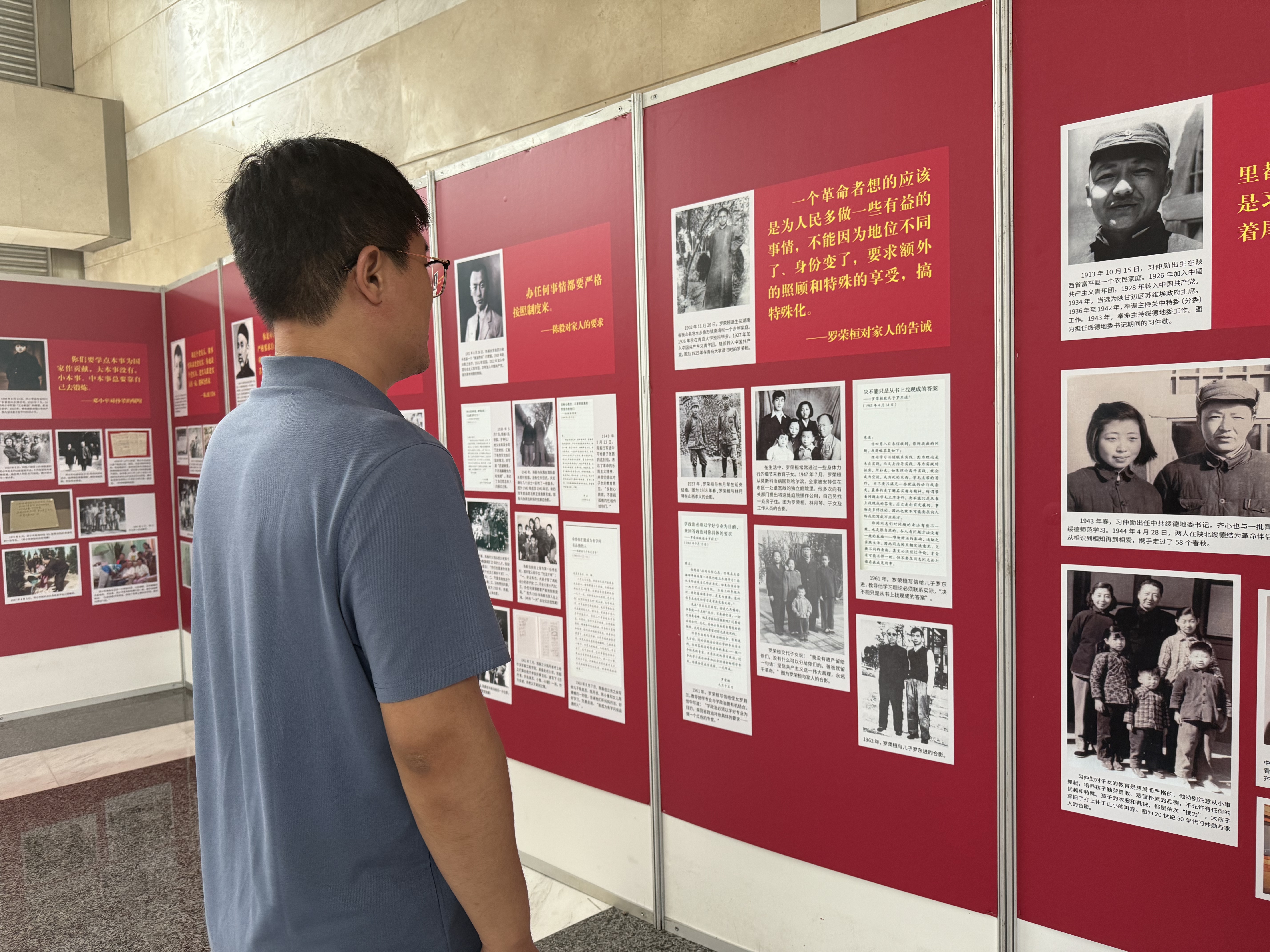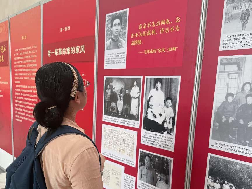 展览分为“老一辈革命家的家风”“革命先烈的家风”“新中国成立以来优秀共产党员的家风”三部分,通过展出老一辈革命家和优秀共产党员与家人的合影、书信、家规、谈话记录稿、追忆文章、工作笔记、诗文等,生动展现了中国共产党人以德传家、以学兴家、以俭持家、以严治家、以廉守家的良好家风,体现了共产党人在理想信念、宗旨意识、廉洁自律等方面的先进性,诠释了中国共产党人的革命信仰与道德风貌。在讲解员的解说下,党员们一边参观一边思考交流,深切感悟优秀共产党人的光辉人格与家国情怀。