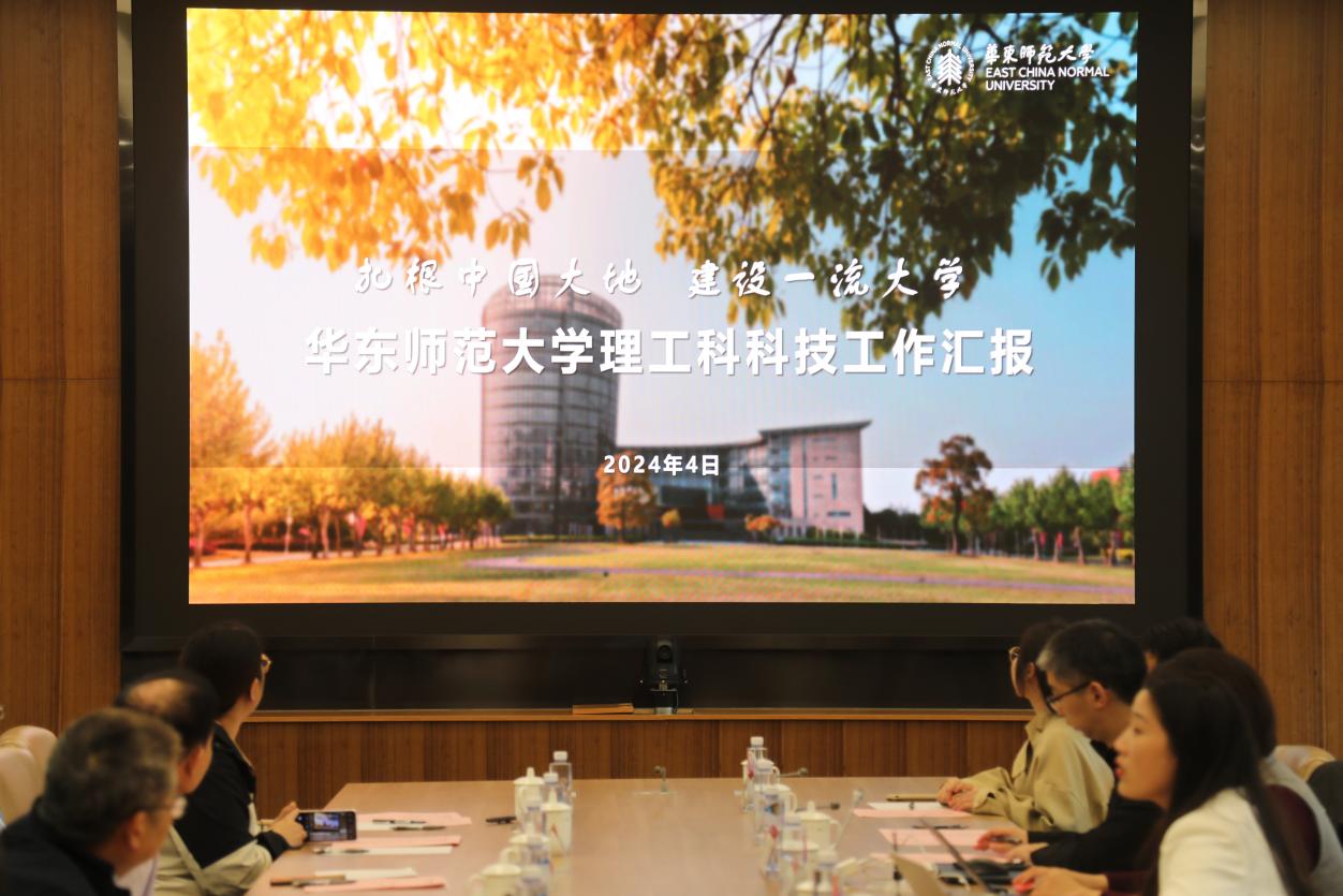 科技处主管熊申展向来访人员介绍了公司理工科科研工作情况。华东师大在理工科科研方面有着深厚的历史积淀,近年来,公司积极对接国家和上海的发展需求,在地理、数学、光学、信息等领域取得了突破性进展,涌现出一大批原创性、引领性创新成果。